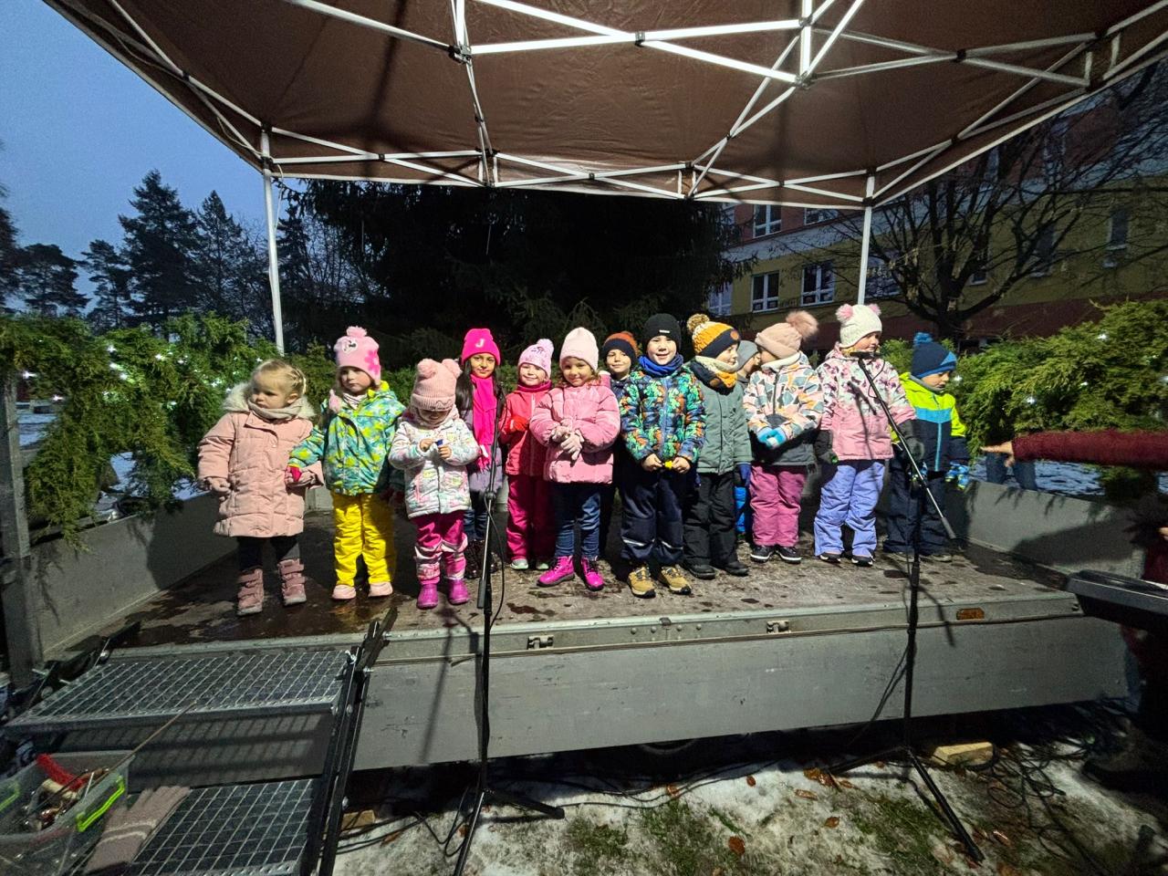 Děti z mateřské školy měly možnost předvést své hudbení dovednosti u slavnostního rozsvícení stromečku ve Skřivanech......a moc se jim to povedlo.