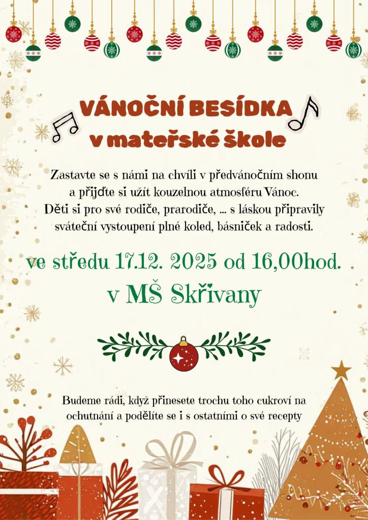 ve středu 17.12. 2025 od 16,00hod. v MŠ Skřivany