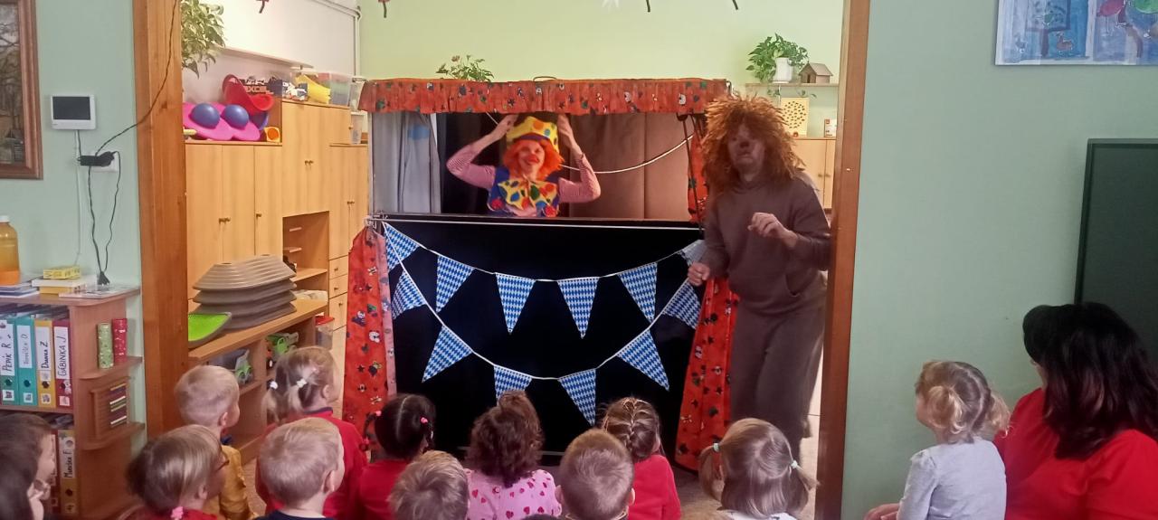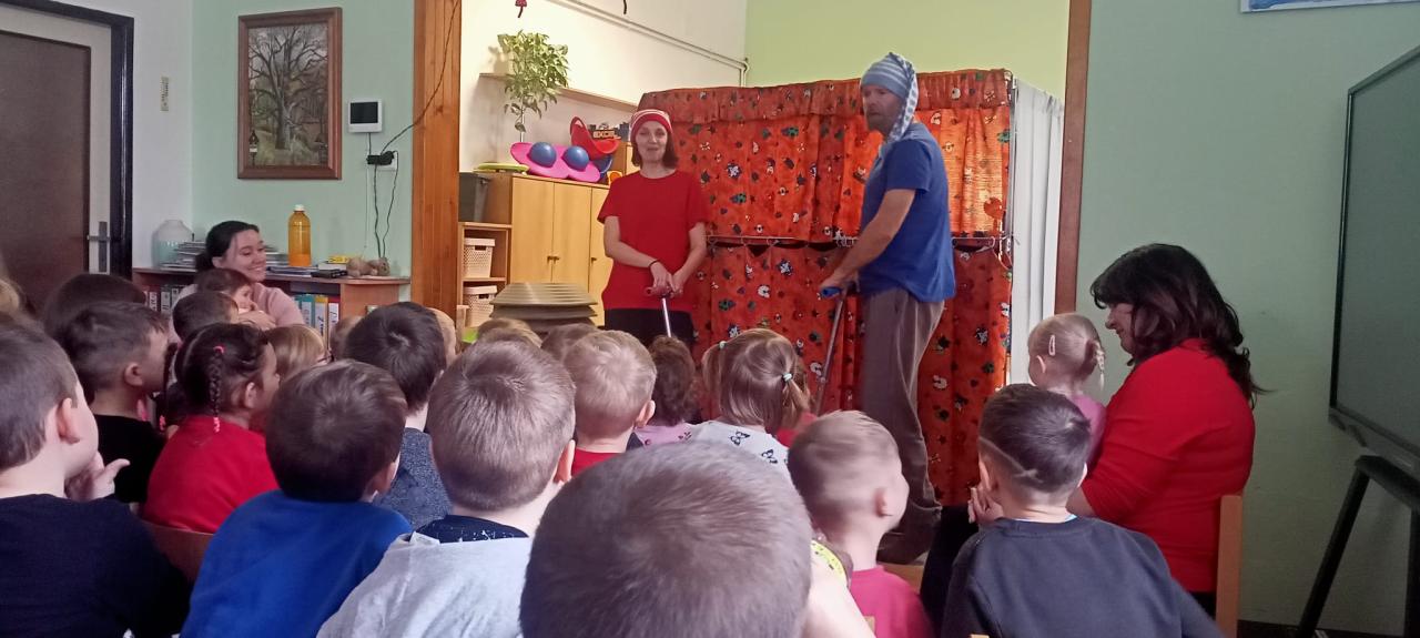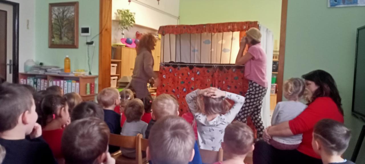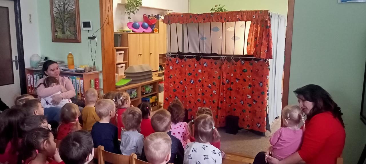 Divadlo Koloběžka v mateřské škole ve Skřivanech.
