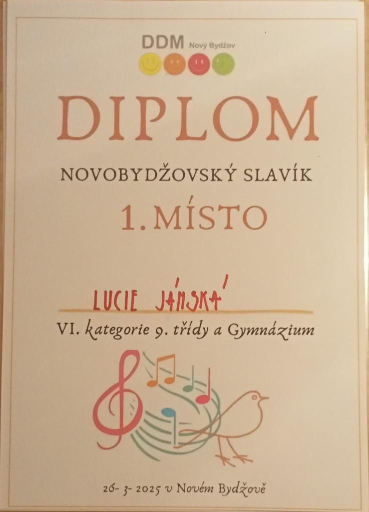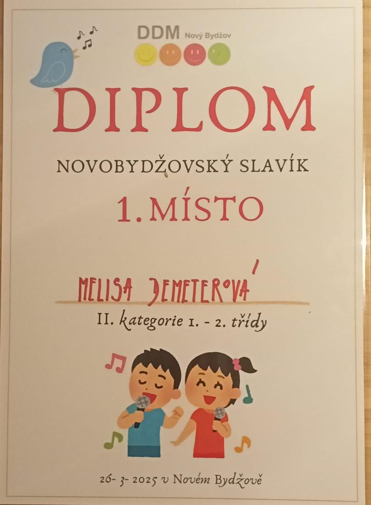 Děkujeme všem zúčastněným žákům za vzornou reprezentaci naší školy a velká gratulace patří oceněným žákyním, které si vyzpívaly nádherná umístění ve svých kategoriích. Poděkování patří i p. uč. Mgr. Ivaně Mansfeldové, která všechny žáky doprovázela hrou na pianino a připravila na soutěžní klání...
