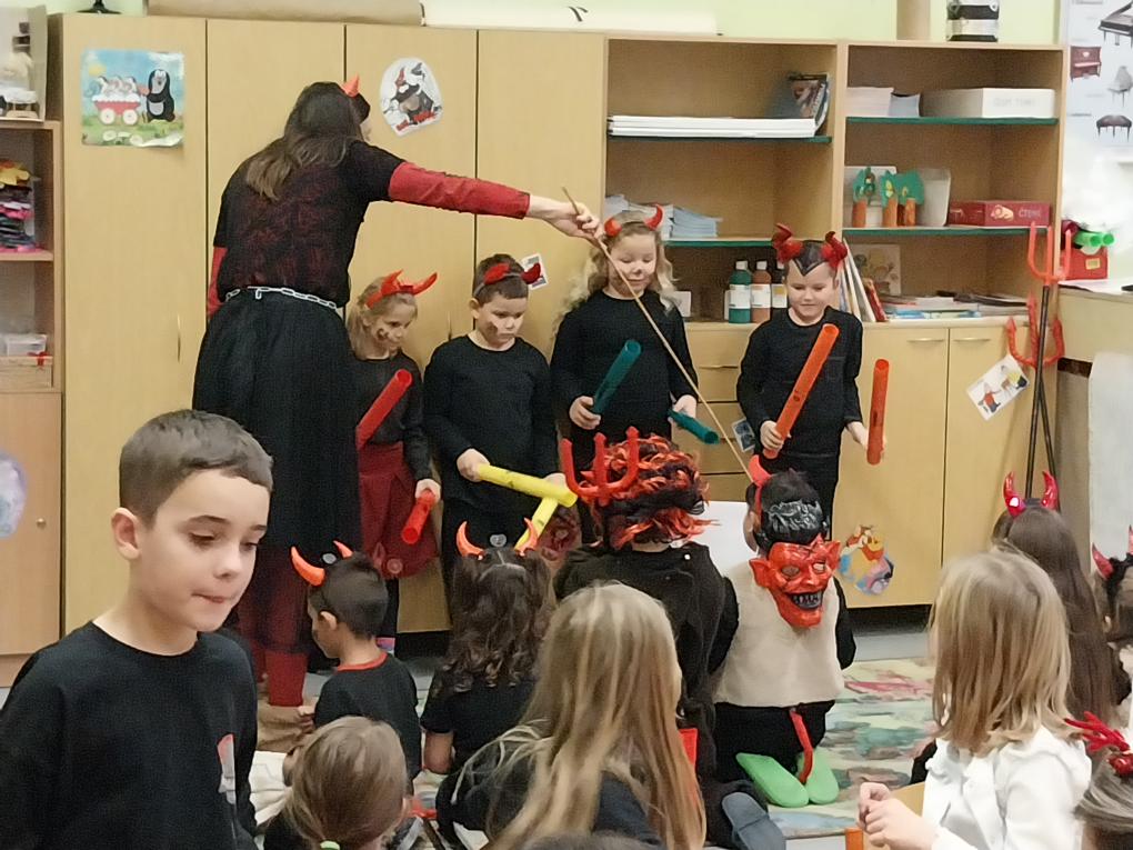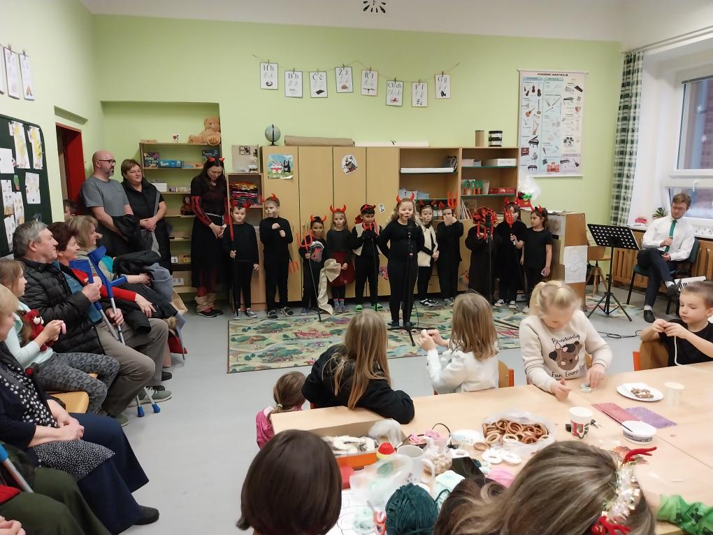 Během odpoledne vystoupili žáci 1. třídy s programem "Pekelná škola" a pěvecký kroužek s pohádkovými a vánočními písněmi.