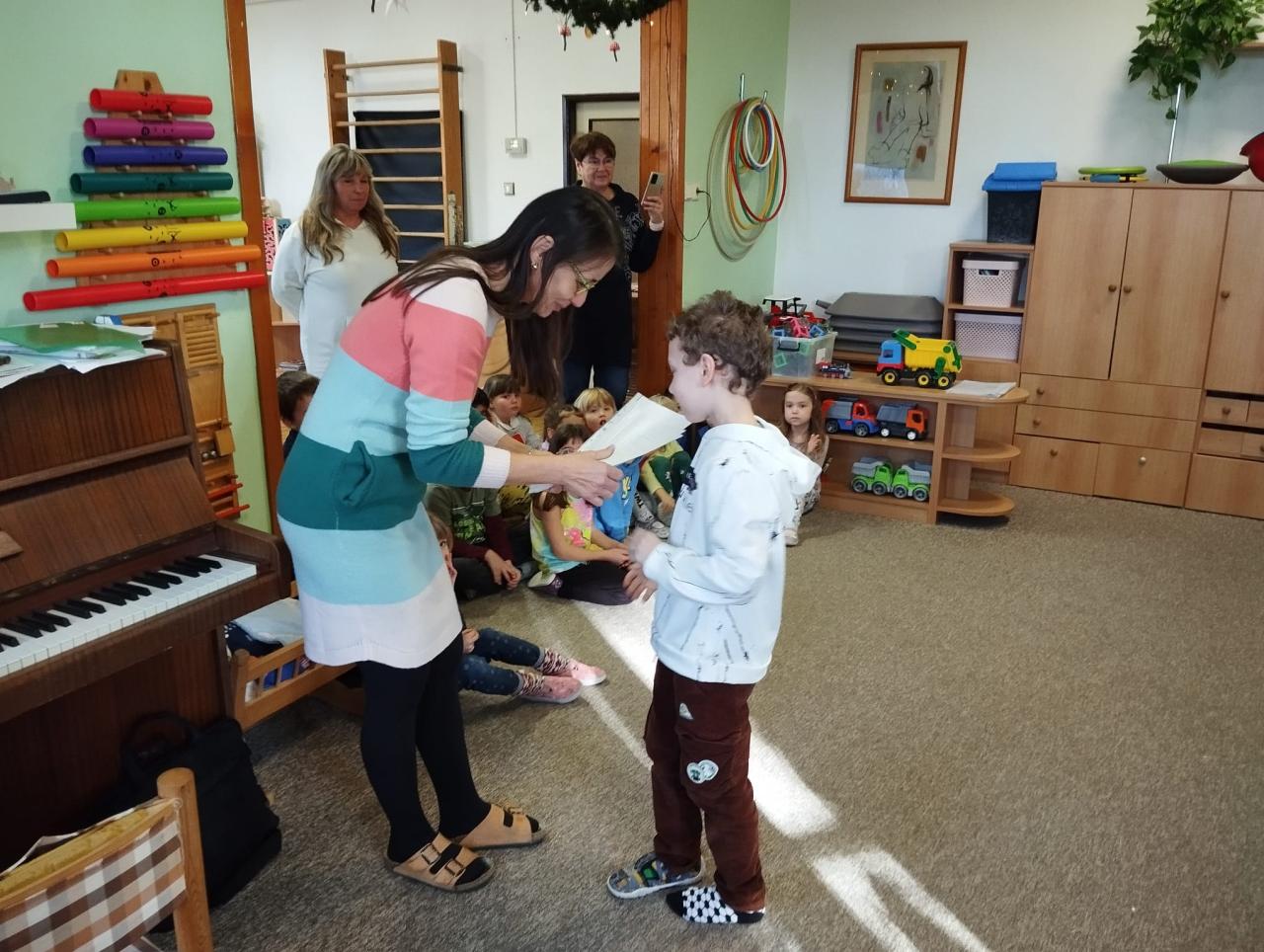 Slavnostní předávání vysvědčení proběhlo mezi dětmi mateřské školy. A odměnou bylo nejen sdílení radosti, ale i spousta her a zábavných aktivit!